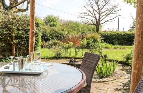 Enclosed, third of an acre of garden with a shallow band of woodland behind the cottage supporting a diversity of wild flowers and bird life, Kidney shaped pond with underwater lighting and statue water feature and lawned areas extending into the woodland beyond Gun Hill Cottage.