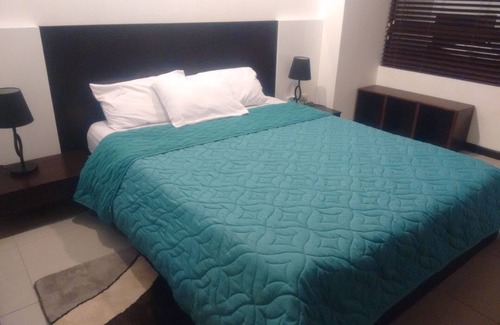 Suite just 3 minutes from the airport in Guayaquil with 24 hr front desk staff and airport transfers, next to Mall del Sol food court and bars. Building has Pool, elevator, gym, Jacuzzi, full kitchen, A/C, private WiFi just for you, hot water, Cable TV, full kitchen, refrigerator, living room, full bathroom with hairdryer and 24 hr bilingual call support.