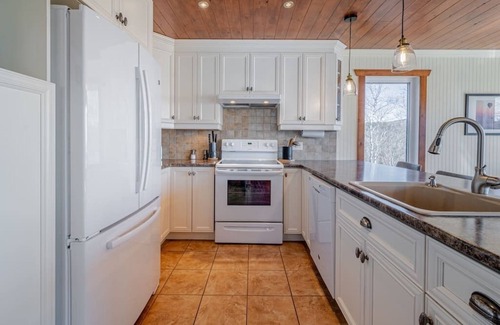 Nestled on the mountainside, this all-blue chalet offers you a splendid view of the St. Lawrence River and all the comforts you want.