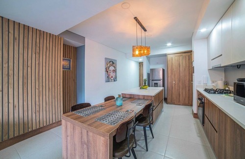 This is a 2-bedroom / 2-bath apartment with a private balcony and roof top pool. It is located in one of the best short term rental buildings that Cali has to offer, a brand new project called Hayedo de Juanambú.