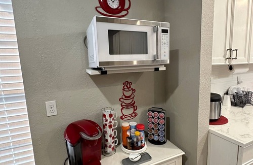 Very unique spaces in this spectacular house both inside and out!! Our backyard firepit is surrounded by peppered gravel, lush artificial grass, hanging lantern baskets, string lights, gas grill, charcoal grill and plenty of firewood all sorted out for you. Oh and a covered patio with 2 ceiling fans, Foosball Table and plenty of cushioned chairs. Inside you will find bedrooms with 10 to 12 built-in dresser drawers with sliding closet doors. TV's in each bedroom and 1 in the Livingroom. Mostly 9ft ceilings throughout. Tile and hardwood floors. Tiled bathrooms. Tall kitchen cabinets with a stunning backsplash and plenty of outlets. Central heat and cold air. So grab your coffee and pick a chair to relax in while you wait for everyone else to wake up.