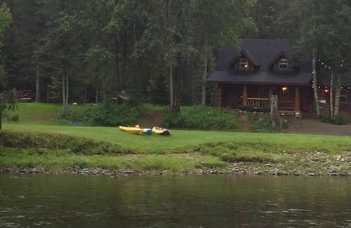 This custom built riverfront 2 bedroom , 1 bathroom log cabin is 30 min north of Bonners Ferry, Idaho and 5 min from Canada, sleeps 6 and features all the comforts of home, including: washer, dryer, dishwasher, fridge, microwave, stove/oven, hot tub, built in gas grill, gas fireplace, covered porch, with bar , sun deck on the river, with full views of the river and mountains from every (riverside) window. great whitewater to lazy river rafting,kayaking, tubing, and fly fishing ( depending on time of year ) right out your front door, in the center of all that is "Far-North Idaho" 600 yard walk to Sinclair Lake, 5 min drive to Robinson Lake, 15 min drive to Dawson Lake for year round fishing and sightseeing, 10 min drive to Copper Creek Falls, nice easy hike to the 200' falls great for summer sightseeing and cooling off, great in winter for ice climbing, 20 min drive and a 1/2 mile hike to Spruce Lake, a mile high sub alpine lake, surrounded by old growth Engelmann Spruce, late summer is Huckleberry season, so keep your eyes open along the mountain roads, great in your pancakes !