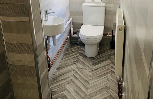 Newly renovated spacious 2 bedroom ground floor apartment , good size lounge and kitchen , master bedroom has private en-suite and there is also a private bathroom . Lovely probe outside private patio area , close to Newport city centre and all transport links