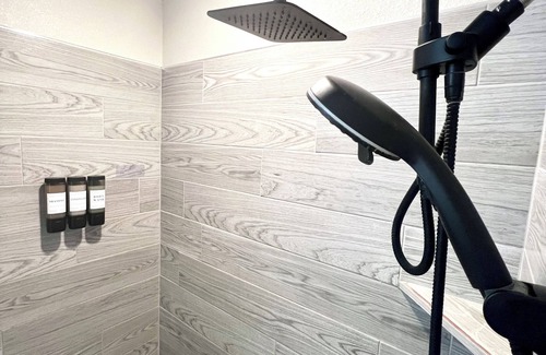 Relax in the spacious primary bedroom featuring a luxurious king-sized bed and a 50-inch Smart TV, perfect for winding down with your favorite shows. The ensuite bathroom offers a step-in shower, ensuring both convenience and privacy for your stay.