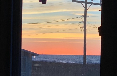 You can't beat the view of the Gulf waves from this 2 br - 2 bath second row beach property . This rental is for the entire upstairs unit, which includes a huge deck and enclosed sun porch. You won't believe the gorgeous sunrises as you take in your morning coffee on the sun porch or deck as you prepare to start your day. The sunsets from the deck are awe-inspiring too as is the view of the area surrounding the east bay from the rear of the deck.