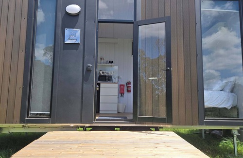 This 139-square-foot accommodation is set in one of the best tiny house rentals and serene locations with abundant natural bushland, easy access to water, split air conditioning, a kitchenette, cooking equipment, and excellent bathroom facilities. These amenities include an eco-friendly cassette toilet with a removable waste holding tank, hand basin, and shower (gas heated for hot showers).