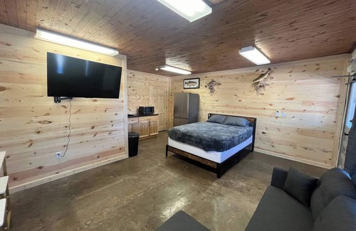 Nestled right out side the Current River and Montauk State Park this cabin is perfect for your next stay. Years of history in this place as a post office and old store now turned into a cabin. One queen bed/ couch/ kitchenette/ and full bathroom for the perfect getaway. Outside sitting area with fire pit and gas grill! You won’t be disappointed! Montauk State Park offers some of the best trout fishing in the Midwest. Just a 1/2 mile down the road from Happy Pappys Cabins. We can't wait to host your next adventure!