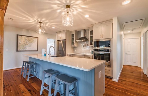 Welcome to Barefoot Palmetto House, a place for family fun in the sun! No shoes required here; palmetto trees included! This home has a newly remodeled living room and kitchen ready for guests to enjoy. The four-bedroom, two-bath beach house comes with a golf cart, Hunting Island State Park pass, and a location that offers more privacy than many other beach homes. We are only a short boardwalk stroll to a serene 2 1/2 mile stretch of pristine white sand beach bordering the Atlantic coast. You can often see dolphins playing in the water and spectators can always spot a shrimp boat or two.