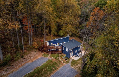 Harmony Ridge Hideaway is a secluded mountain retreat in the Shenandoah Valley. Nestled on over 10 acres and surrounded by mature trees, it's an ideal getaway to relax and recharge. Have breakfast on the top deck while taking in the view, then lounge on the shady side deck or sunny outdoor patio. Later, play ping pong, pool, or an arcade game. Then wind down in the hot tub or watch a movie in the basement. Located 1.5 hours from the DC metro area, it is the perfect place for a change of pace.