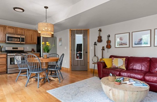 Inside, the space is decorated with art & goods made by local artists and artisans. The living room is filled with books about Alaska and books written by local authors. There is also a TV with access to Netflix, Hulu, Disney+, ESPN+, and some board games. There is a guitar, banjo, fiddle, and ukulele hanging on the wall that would love to be played (but will probably need to be tuned!).