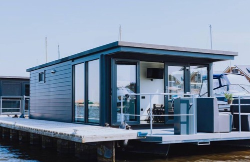 "Havenlodge", 3-room house 26 m2. Comfortable furnishings: living/dining room with dining table and flat screen. Exit to the terrace. 1 double bedroom with 2 beds. Exit to the terrace. 1 double bedroom with 1 x 2 bunk beds. Open kitchen (4 hot plates, electric coffee machine). Shower/WC. Air-conditioning. Terrace. Terrace furniture. Panoramic view of the lake. Facilities: Internet (WiFi, free). Please note: non-smoking house. Smoke alarm. Air conditioning with heating function. This is a houseboat.