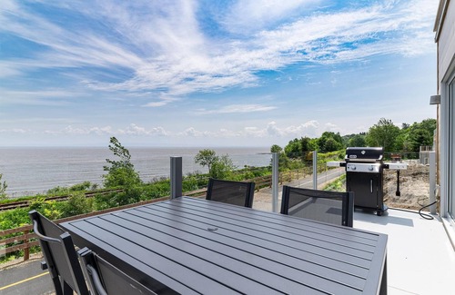Wake up to stunning St. Lawrence River sunrise views at Havre du Loup, a modern riverside condo in prestigious Grande Pointe. Direct access to pedestrian trails, a fully equipped kitchen, and a peaceful waterfront location perfect for couples and young families. Experience Charlevoix's natural beauty from your private ground-floor retreat with large panoramic windows. Experience the perfect blend of comfort and tranquility in an idyllic setting.