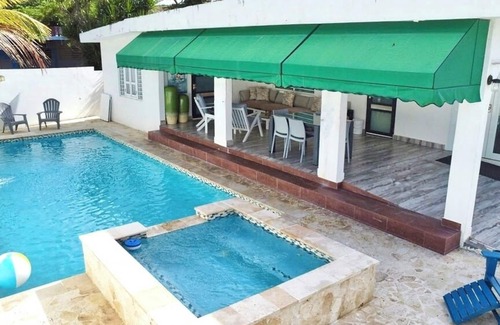 This charming home is fully fenced and gated for privacy, just across the street from the beach, featuring a spacious outdoor living area, pool/hottub and plenty of seating for family gatherings. Location, location, location! Steps from the sand and a short stroll to the famous Luquillo Kiosks. 10 mins to ElYunque rainforest, 11 miles to a bright Bioluminescent Bay, 10 mins to the Vieques & Culebra ferry, and 40 mins to San Juan & the airport. Fall asleep to the soothing sound of crashing waves.