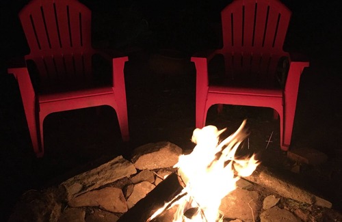 *There's a stone lined fire pit for your enjoyment with a picnic table and chairs, cookout or just relax.