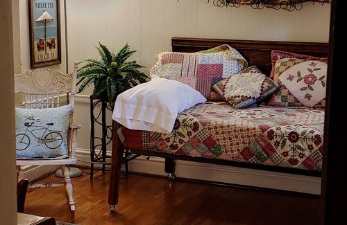 We enjoy the eclectic decor (Which Nancy has collected when she goes antiquing) , and cozy "home away from home" feel this old house has. We hope that you will too!