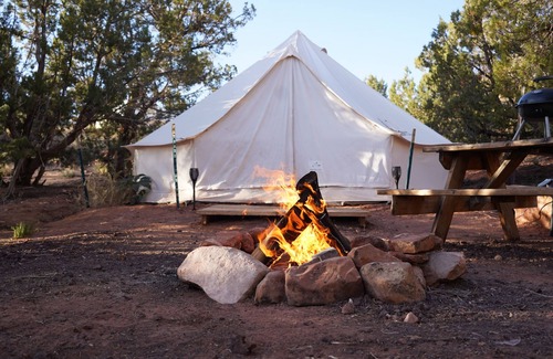 Heated/cooled king size glamping tent at Zion View Camping! is located in Colorado City. Heated/cooled king size glamping tent at Zion View Camping! provides accommodation, featuring Internet, Kitchen, Laundry, among other amenities. This RV Rental features Internet, Kitchen, Laundry, to make your stay a comfortable one.