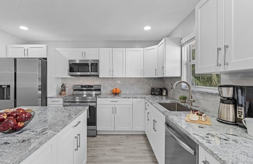 Leave your worries behind and step into Shore Beats Working, a charming escape where relaxation isn't just encouraged—it's a way of life. Whether you're looking to unwind under the Florida sun, explore the vibrant local scene, or simply take a break from the everyday grind, this beautiful home offers the perfect setting for your getaway. Here, the only deadlines are sunset views, and the only meetings involve a tropical drink in hand. Here's what makes this home so special: