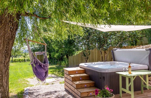 The garden: South-facing garden with fabulous deck and 6-person hot tub with views over the local vines. Table Tennis and children's swing set. Garden gate leading out into the vineyard.