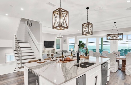 "Heavenly Day" by Holiday Beach Rentals is in the quiet area of Bid-a-Wee Beach. It's one of Panama City Beach's most sought-after beach neighborhoods because of the unobstructed views of the Emerald Coastline. You won't find anything built directly on this preserved beach, even the beach access is privately gated and only accessible through an exclusive code. This upscale rental home features 5-bedroom suites, 3 living-room areas, fully equipped kitchen, private heated pool, and furnished balconies.