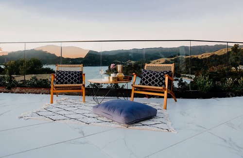 Designed by award winning Queenstown architects, set on hilltop with stunning views of both Long Bay, and the Coromandel Harbour. Quiet, private, eco, luxury interiors with modern home automation, and surrounded by beautiful beaches. Very spacious with all 5 bedrooms with en suite bathrooms; seamless flow between inside and outside, good for both relaxation and parties. We love to entertain so the house is designed for that with in-house movie system, enormous open kitchen and bar.