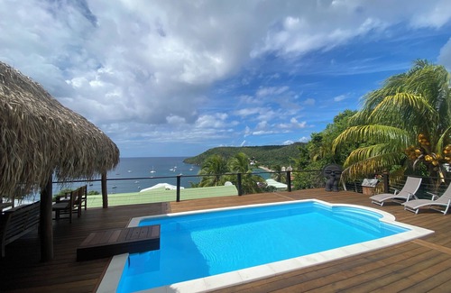 Heavenly setting, view of the Caribbean Sea, swimming pool and large shaded terrace. | Villa in Les Anses-d'Arlet