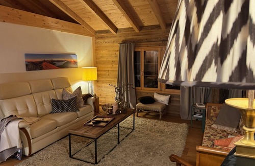 95 m2. More information by the provider: Stylishly furnished 3-room Alpine Chic holiday apartment (95 m², 1st floor with balcony) at 1200 m above sea level with plenty of wood and charm, in a very quiet, sunny location with views of the village of Zweisimmen and the surrounding mountain scenery. An ideal starting point for hiking, biking, cross-country skiing, winter and snowshoe hiking in the nearby winter sports and recreation area Sparenmoos. 3 km from the center of the village of Zweisimmen. A retreat for connoisseurs. The access road is maintained in winter; however, a 4x4 vehicle or snow chains are beneficial.