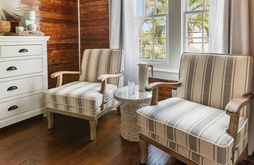 The magic begins as you step onto our cozy wraparound porch with comfortable and plentiful seating, where you are immersed in the unique sights and sounds of our charming neighborhood. The spacious kitchen, dining and cozy living areas are shared spaces on the first level. Retreat to our tropical garden to savor a cup of coffee in the morning. Sip on a crafted cocktail in the afternoon and take a dip in our lush tropical heated pool featuring a soothing and relaxing waterfall. Indulge yourself with a favorite novel or explore the internet with free Wi-Fi. All of our rooms include an en-suite bathroom, Serta PerfectSleeper Prestige Suite 11 Mattresses, fine linens, flat screen TV, coffeemaker and a mini-fridge, countertop ice machine, as well as tropical garden views. Our concierge services can advise you about all the things to do, including reservations to snorkel, kayak in the mangrove channels, or relax on an evening sunset sail.