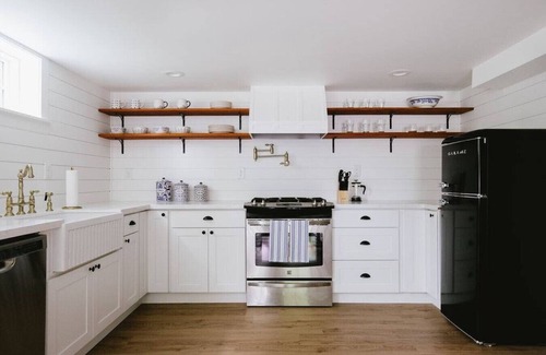 Additionally, there is a shared laundry room in the basement. The laundry space is shared with the upper unit, Lady Mary Cottage. Each unit has secure locks to their private spaces.