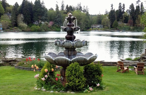 The Eagle’s Nest cottage is the guesthouse of a waterfront property located in Winslow. The cottage is located at the end of a cul-de-sac (not next to the water), then there is the main house, followed by Eagle Harbor. Access to the water by walking past main house. The Eagle's Nest is just a 35 minute ferry ride from Seattle and includes a fully furnished one queen bed and one full bed, one and a half bath, modern kitchen, living area and an outdoor patio. Upscale furnishing, throughout, 2 tvs (one smart with Xfinity cable, Netflix, Prime Video & Hulu and another tv in the spare bedroom only with dvd/video player & movie library) Wireless Internet included. For those enjoying a longer stay, you will appreciate the washer/dryer. The backyard is fenced for privacy and has a fountain and covered enclosure with outdoor seating.