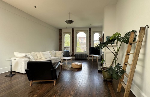 Large light filled, spacious and furnished heritage loft in Gastown. Just steps away from some of the best bars, restaurants and cafes in the city, this loft is a perfect place to experience downtown living in Vancouver. Walking distance to the downtown core, Chinatown, Olympic village, Stanley park and public transport. Enjoy luminous loft living in this 850 sqft space boasting original brick walls, hardwood floors and a gas fireplace. Beautifully furnished and truly a unique space in the heart of historic Gastown. No parking in the building but plenty available nearby.