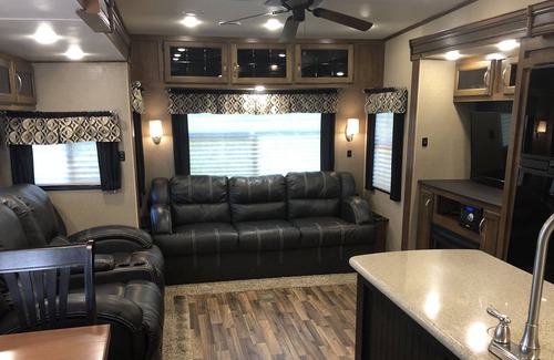 Our site is Quiet, very clean, and Private combined with a Luxury RV that sleeps 4. Beautiful inside and area for cooking out by the firepit, gas grill, picnic table and 21' awning.