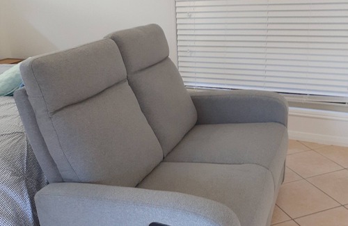The studio is quite spacious with a queen size bed, double recliner settee, a small dining table and kitchen bench with microwave, kettle, toaster and sandwich maker. There is also a private ensuite bathroom. The unit is air conditioned. Attached is a full length carport which creates a lovely cool breezeway, perfect for eating outside or just a quiet getaway to read a book.