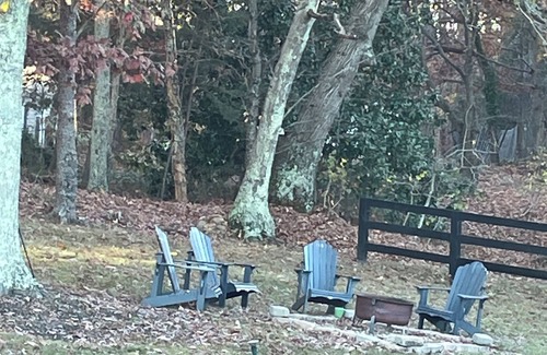 I love to decorate so I’m particularly grateful to do so in this barn studio. I want my guests to feel like they are in a home not in a hotel room. I carefully hand pick and oftentimes paint my own furniture finds. The balcony is a great place for morning coffee (I grind my local favorite Greenberry’s coffee beans for guests to enjoy prior to each arrival) breathing in the fresh air and taking in the Mountain View’s. We have a fire pit (wood, kindling, blankets and lighter provided) and a pool up near our main house for our guests to enjoy. (Please let us know if you’d like to use the pool after 6:30 pm as we like to swim laps around that time so we can adjyst.) There is another guesthouse on the property and all guests have access to the pool. Pool is seasonal.
