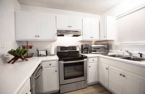 So much detail was put into our condo to make you feel comfortable after a long day at the beach! Our entire condo community was fully renovated after Hurricane Michael in 2018! Our home was recently renovated with brand new luxury plank flooring throughout. Brand New Quartz countertops, New large deep kitchen sink and new faucet with sprayer. New paint, LG stainless steel appliances including stackable large washer/dryer. New bathroom renovation with shiplap, tub & custom antique vanity. Living room sofa and chairs are high grade soft leather. All beds feature new comfort mattresses, luxury sheets and bedding. Enjoy a large spacious balcony with seating. Entire home features high speed Xfinity WIFI/premium cable channels!