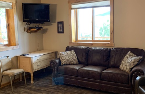 Cozy apartment with a secluded deck. Two bedrooms each with a queen bed. Living room hide a bed couch offers additional sleeping arrangements. Good size kitchen with plenty of seating Laundry room and large bathroom. Large deck to enjoy your morning coffee and enjoy sunrises and sunsets. A view of the Teddy Roosevelt Arch, town of Gardiner , and Electric Peak in Yellowstone Park. Short distance to the North Entrance of Yellowstone National Park. Perfect for a couple or two or small family.