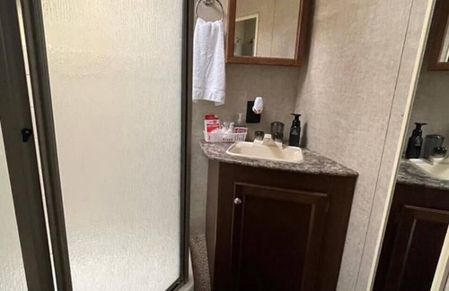 Welcome to the RV getaway of your dreams. No setup, no work, no hassle, just fun! Arri This RV sleeps 4 guests, with plenty of room for everyone! Situated on the water, enjoy the beautiful sunsets of southwest Florida while enjoying a nice time by the fire-pit. Be sure to keep an eye on the beautiful wildlife! The RV has a full kitchen, grill, and a fire-pit, as well as an outdoor space with a canopy. Enjoy dinner at sunset with the family at the full size picnic table right next to the RV! The large awning keeps the site shady and clean, allowing you to cool off during those hotter days. With two entrances, one into the main living area and one into the bedroom to make your stay that much more comfortable. With plenty of storage space, you will have more than enough room for all of your belongings during your stay. Take advantage of all of the amenities offered within the campground including the pool, hot tub, tennis court, basketball court, pickle ball court, and more! The pool not your style? Well, we have good news, the RV is just a quick 15 minute drive from some of the most beautiful beaches in all of the United States! Choose from a variety of famous beaches and restaurants for a night out in the town! This is a vacation getaway you will never forget! If you are interested in a stay longer than two weeks, please call 862-243-2777 or send us an email at bookings@glamperscamp.com for special rates. Please be sure to keep your pets on a leash at all times and be aware of any wildlife including but not limited to: alligators, snakes, snapping turtles and moreve at your fully loaded RV, stocked up with linens, towels, all utensils and kitchen supplies. Choose from a variety of our add-ons including kayak rentals, golf cart rentals, and more! .
