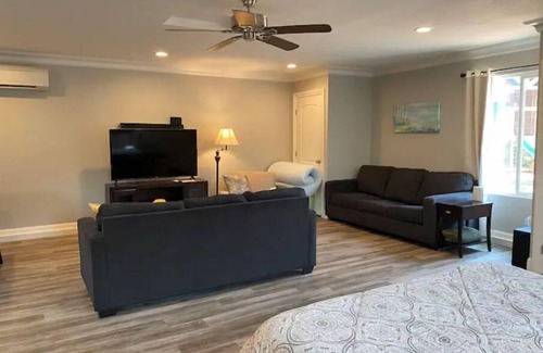 Welcome to the Guest House! This 1-room studio with private entrance and luxury amenities is in a safe, quiet neighborhood. Suitable for a weekend getaway for 2 or family of 6. Perfect location - 3 min off I-5 and CA-299. Walk to Simpson U, 2 min drive to Bethel & Shasta College, 10 mins to Downtown / Sundial Bridge, 45 mins to Lassen NP & 60 minutes to Mt. Shasta. No stovetop/cooking facilities. Strict no pet policy. Cul-de-sac street or driveway parking. Basketball hoop & kids' playground.