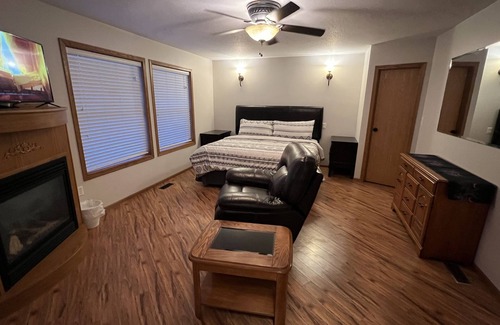 High End King Suite c/w Living room, 2 Fireplaces, 2 Smart TVs, Kitchenette. | House in Three Hills