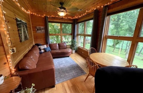 Come relax at the peaceful river cabin. It feels like a retreat right on the Kentucky River with a dock shared with host for easy river access. It’s a cozy cabin on stilts with a stone fireplace and porch with table and chairs. Be surrounded by nature and beautiful views of the river and palisades.