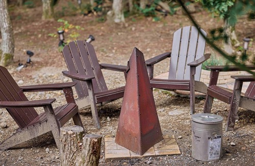 In front of the wooden deck there is a bonfire space where you can spend time while feeling nature such as talking or reading while surrounding the bonfire