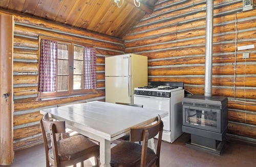 Welcome to Highlander. It is considered a six person cabin and has a queen and a full in one bedroom and a queen in another. Highlander is a true log cabin built in the late 30’s and modernized along the way with bath, kitchenette with full size stove and fridge, gas fireplace for heat, Broadband WIFI, all linens and utensils. Run away from home and bring food and personal clothing, Wickiup has the rest.