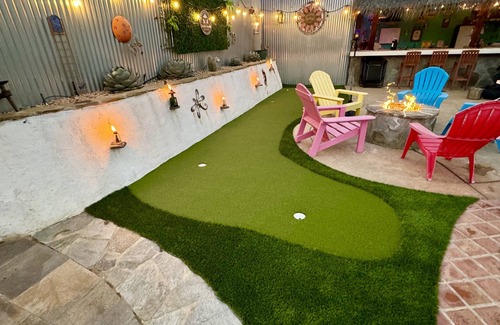 We have an enjoyable putting green area and provide golf putters and golf balls, so much fun!