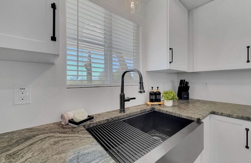 But it's not just about outdoor living here - step inside this fully remodeled 2 bedroom, 1 bathroom home and you'll find luxurious accommodations fit for royalty. Both bedrooms boast king-sized beds and super-sized TVs for ultimate comfort and privacy. The spacious bathroom is conveniently located between the bedrooms, making it perfect for sharing.