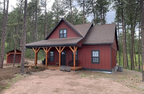 This cozy home was completed in 2019 and is located in the heart of the Black Hills. The home features 3 bedrooms, 2 full baths, living area with an open floor plan. Guests of Hilltop Hideaway will be treated to rustic / modern decor and all the amenities of your home. The main level bedroom has a queen size bed and the upper level has 2 bedrooms, both with queen beds. One full bathroom located on the main level with shower and upper level full bathroom with tub/shower.