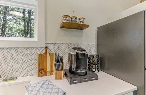 The third addition to Hiltop Haven, this adorable tiny home is perfect for couples and small families to enjoy all Hocking Hills has to offer. Situated on a secluded 14 acres, this property offers plenty of privacy from the other 2 units with its own fire pit, hot tub, patio and living space.