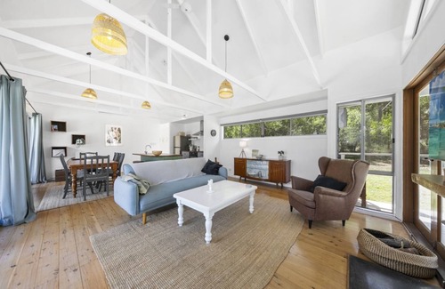 With grand cathedral ceilings, a crackling Jindara fireplace (seasonal) and seamless indoor-outdoor living, it's the perfect getaway for a couple or group of up 4 guests. Property equipped with a TV, RC A/C and outdoor BBQ on the deck.