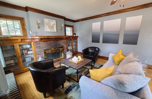 Enjoy the comfort and charm of this historic 1920s custom built home. The beauty of this home resonates with its custom woodwork, refinished wood floors, french doors, crown molding and more. Each room has its own unique feature making it a memorable stay.