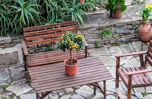 There are also two lovely outdoor areas with the apartment. One is a large terrace, which includes garden, seating area and barbeque. Also, there is a smaller area with a bench and table at the front door to the apartment.