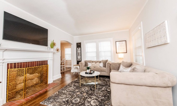 Historic Charm w/Game Room and King Bed is located in Perry. Historic Charm w/Game Room and King Bed provides accommodation, featuring Kitchen, Pet Friendly, Bedding/Linens, among other amenities. This House features Kitchen, Pet Friendly, Bedding/Linens, to make your stay a comfortable one.