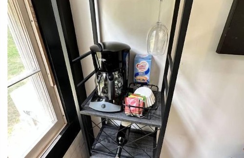 - Primary Bedroom: king, side tables, clothing rack with hangers and shelves, HVAC mini-split system for heat/AC